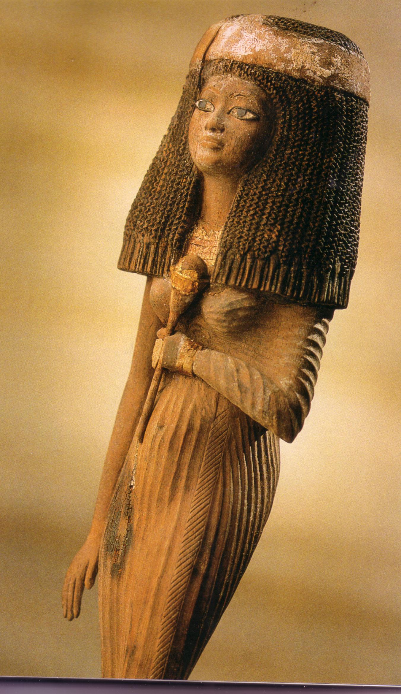 Queens Nefertari, Nefertiti and Cleopatra, who reigned as “the most beautiful women of their time”, spent hours each day being pampered to preserve their beauty, youth and sensuality. They bathed in donkey milk, rose petals and honey… exfoliated their bodies with herbs, spices, barks, roots, seaweed and salts… and were massaged with essential oils extracted from the sacred blue lotus flower. They wore diaphanous white dresses, often exposing one bare breast. Egyptian royalty worked hard to enhance their sexuality and please Osiris and Horis, the gods of the after life they worshipped.