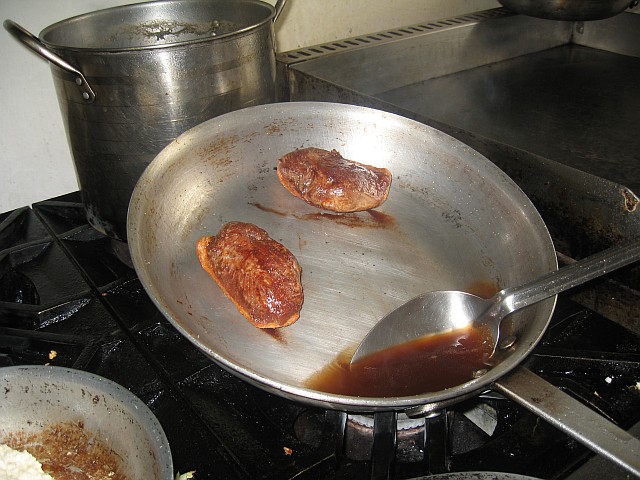 I follow Manuel’s instructions, mixing whole kernel and ground corn, as I learn to make pre Hispanic mole from a recipe that has been handed down from the Aztecs. Manuel turns back to the stove, to sear his duck breasts, over a high fire, shaking the pan and basting them with mole sauce.