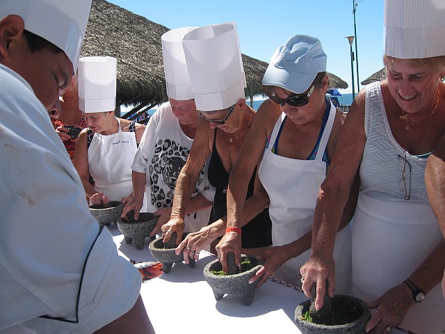 We cross the water on a small boat to Ixtapa Island. Once there, some of our group spend time snorkeling; others kayaking; I prefer an outdoor massage, watching the surf break, and then a swim before lunch. Long wooden tables are set up on the sand; we are served authentic local specialties like raw fish tiritas doused with lime juice and yummy pescadillas before we head back to the mainland.