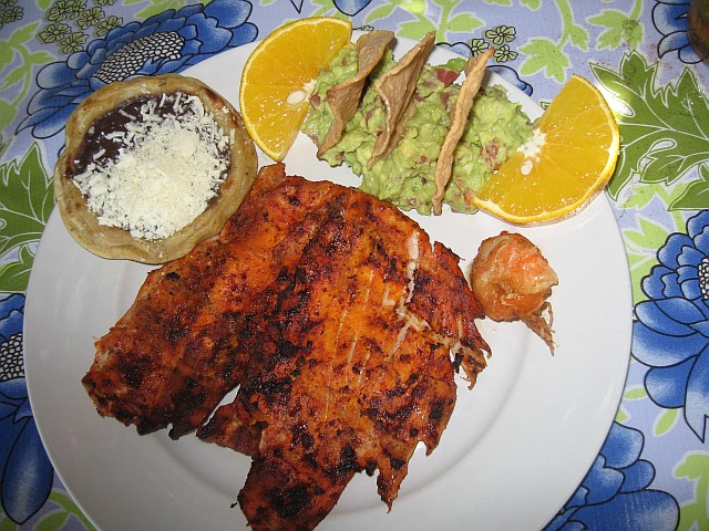 I sip my first made- in- Mexico margarita, and share a feast of typical shredded fish in lime served in a coconut, sautéed shrimp with lime vinaigrette, beef filet grilled to medium rare perfection and a sour sop mousse with strawberry and mango coulis. It is a delicious and festive evening, and I am happy to be here.