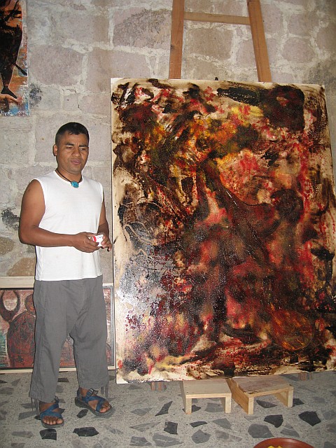 Pantaleon describes himself as “a painter with a dual consciousness “. He calls his work, which has been shown in the Museo Textile Oaxaca, “Transiciones”. I am honored to meet this multi-dimensional artist who is so adept at weaving life experiences into his art. .